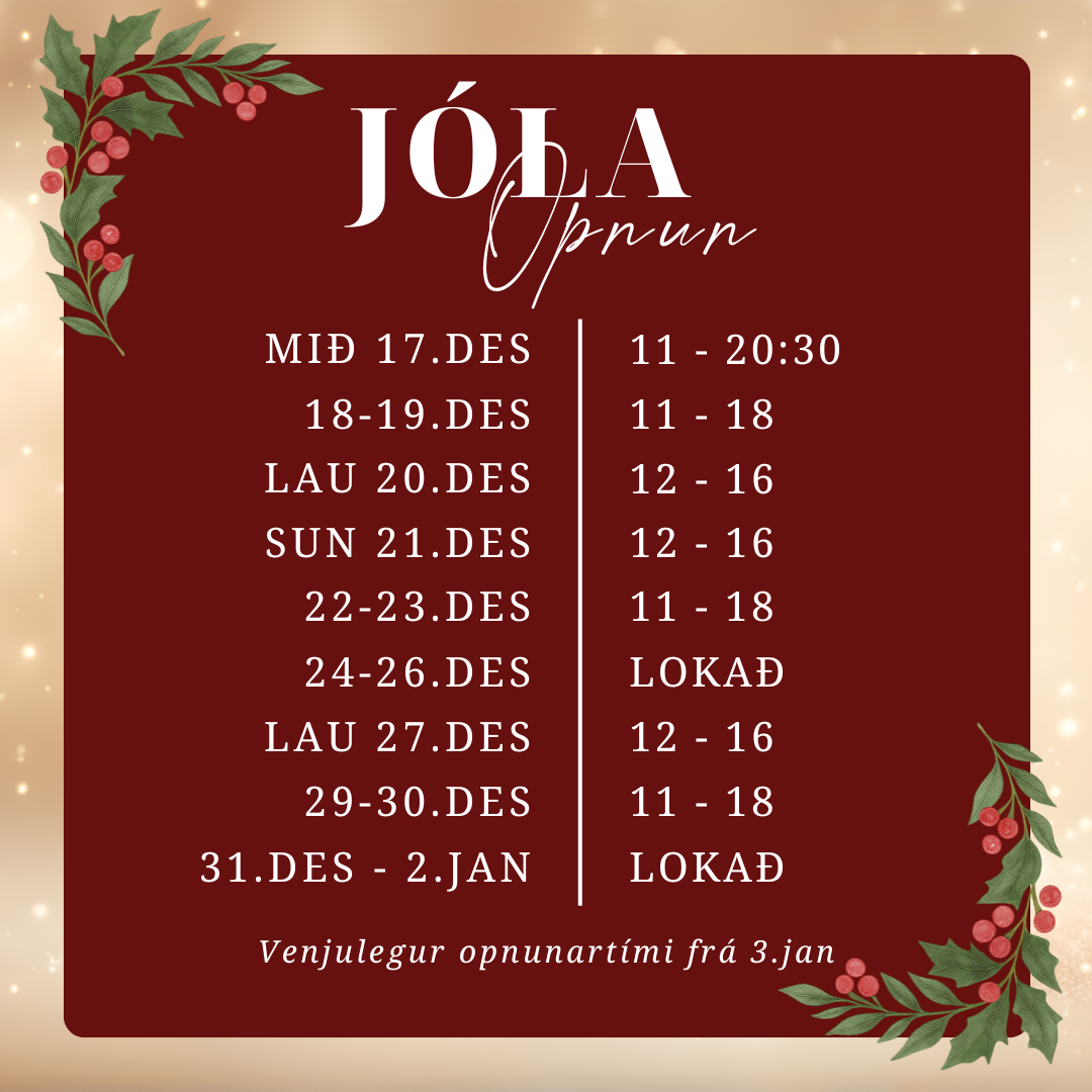 Skoða alltOPNUNARTÍMI YFIR HÁTÍÐARNAR