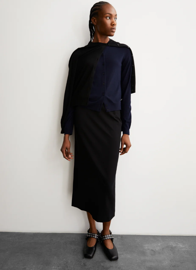 PATINAA er tímalaust og fjölhæft pils sem sameinar kvenleika, þægindi og sjálfbærni á elegant hátt. Það er með midi-sídd, teygju í mitti og er saumað úr mjúku, vegan og glanslausu efni sem fellur fallega. Þetta er pils sem hentar bæði í vinnuna, í fríið eða fínni tilefni – auðvelt að para við bæði stígvél, strigaskó eða hæla.
