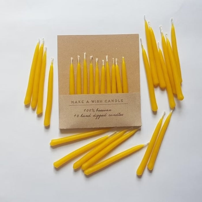 Afmælis kertin eru handgerð úr hráu & náttúrulegu býflugnavaxi. Létt og náttúruleg lykt af hunangi. Non-toxic og henta fyrir hvaða afmælisveislu sem er!
