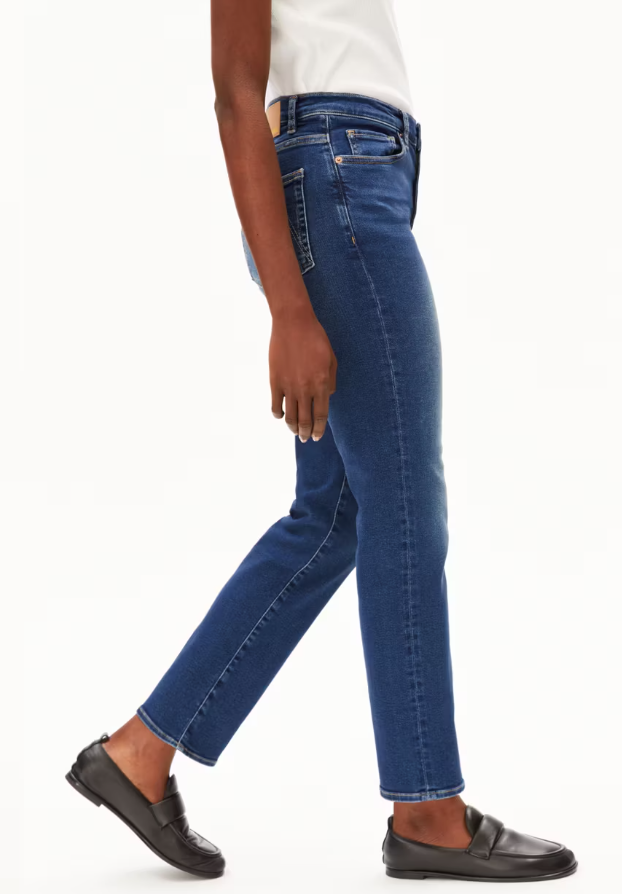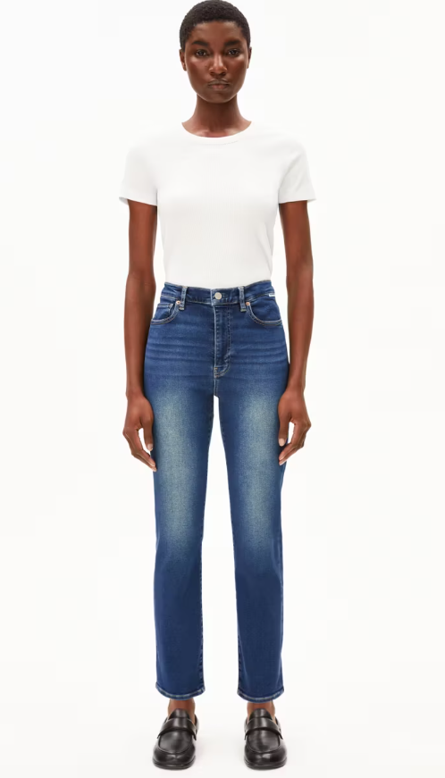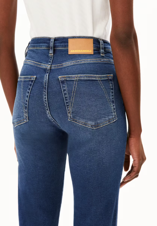 Þessar gallabuxur eru framleiddar með sjálfbærni í huga – úr lífrænni og endurunninni bómull ásamt smávegis af teygju, sem gerir þær bæði endingargóðar og mjúkar. Litunin fer fram án hættulegra efna og með vatnssparandi aðferðum, svo þú getur verið meðvituð/meðvitaður um valið þitt.