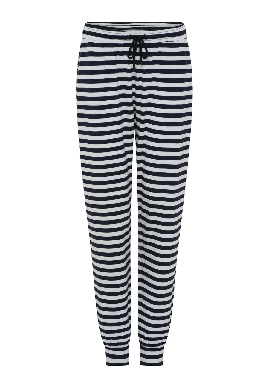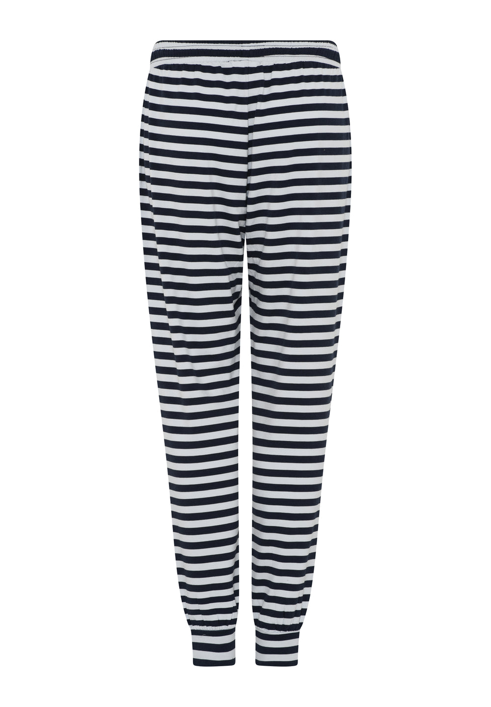 Betty buxurnar eru hannaðar með þægindi og ró í huga. Þær eru úr mjúkri blöndu af bambusviskósa og lífrænni bómull sem leggst létt og andar vel á húðina. Teygjanlegt mitti með stillanlegu reim tryggir fullkomna passa, á meðan riflaga faldarnir gefa afslappaða og stílhreina áferð. Klassísk röndótt hönnun sem hentar jafnt á rólegum morgnum sem og notalegum kvöldum.