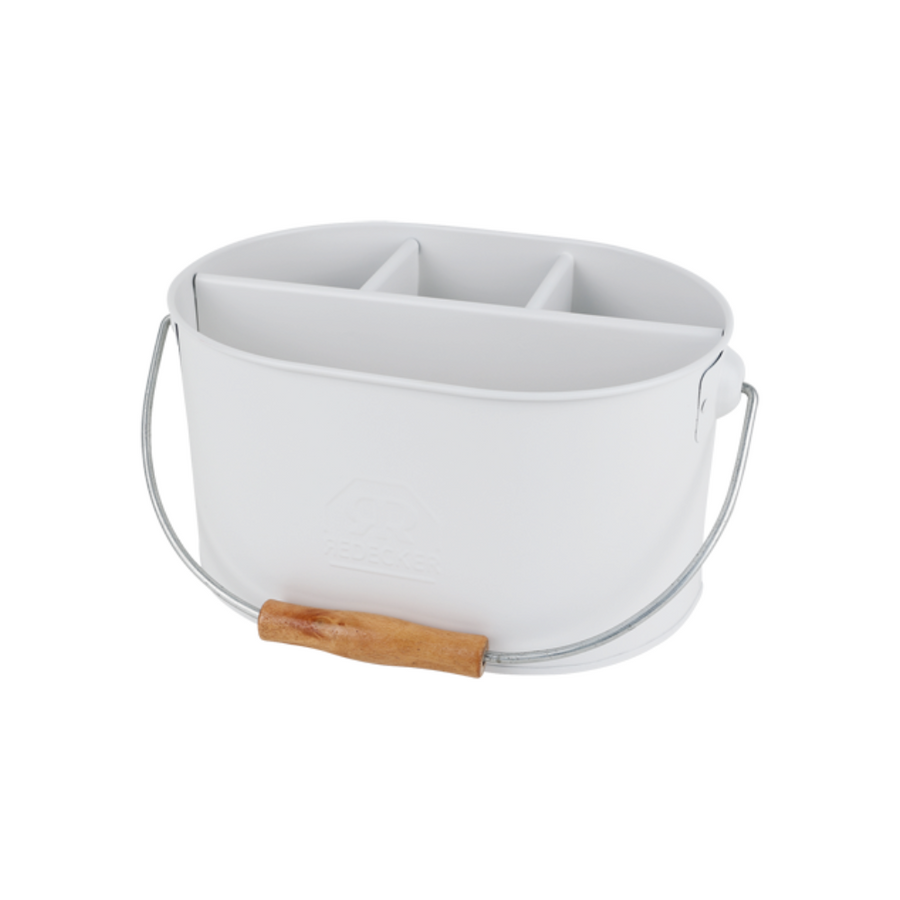 Hægt er að nota skipulags fötuna á marga vegu. Hvort sem það er fyrir áhöld til hreingerninga, fyrir eldhúsáhöld, við grillið eða fyrir litlu garðáhöldin og garðhanskana. Fatan er einföld, traust, létt og praktísk. Með þremur hólfum á annarri hliðinni og einu stóru hólfi á hinni.