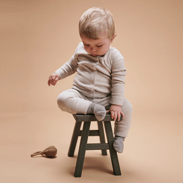 Oak heilgallinn frá GoBabyGo er hannaður með hreyfifrelsi og vellíðan barnsins í huga. Hann er úr 100% lífrænni GOTS-vottaðri bómull, litaður eingöngu með plöntulitun án allra skaðlegra efna – fullkominn fyrir viðkvæma húð ungbarna.
