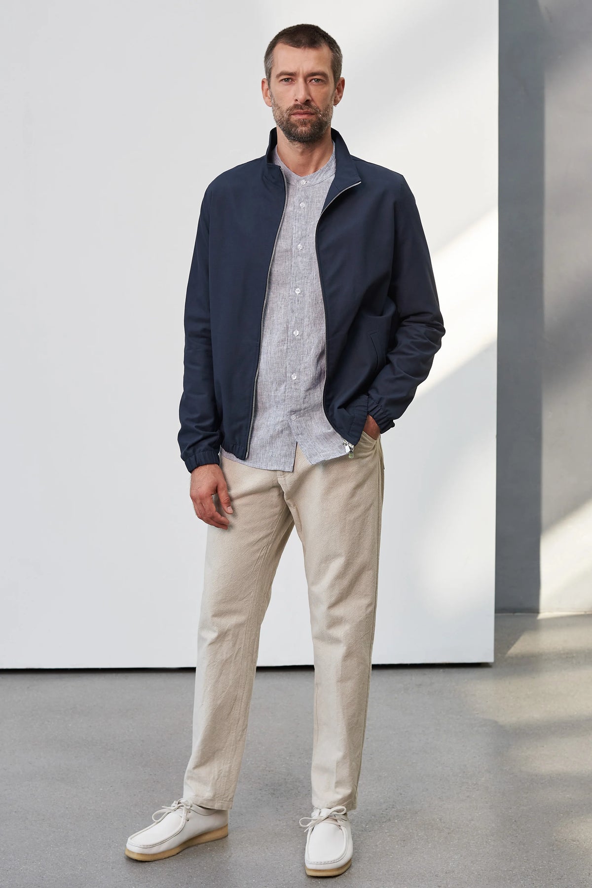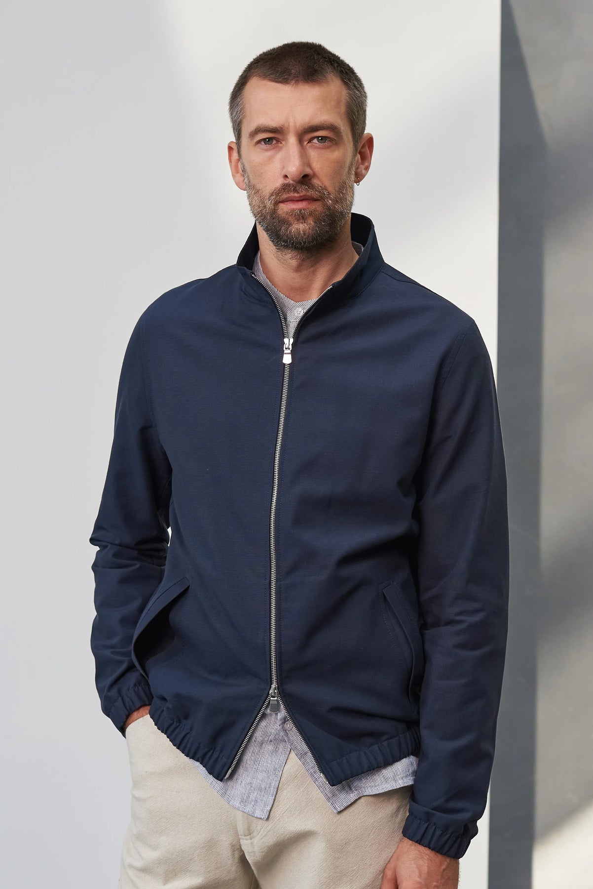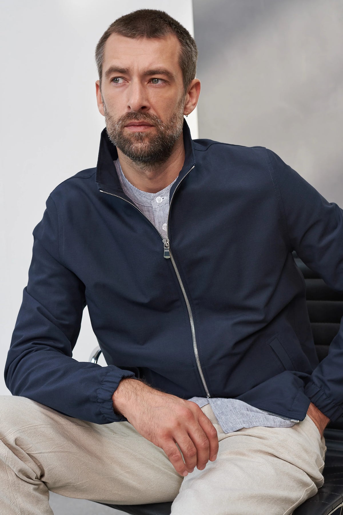 Juri jakkinn er innblásinn af klassíska Harrington-jakkanum og er með beinu, klassísku sniði sem gefur honum áreynslulaust og stílhreint yfirbragð. Hann er úr mjúkri og sjálfbærri Tencel™-blöndu sem fellur fallega og skapar fágað útlit – fullkomið bæði fyrir afslappað skrifstofuumhverfi og daglegt notagildi. Jakkinn er forþveginn til að koma í veg fyrir að hann hlaupi í þvotti og fellur undir viðgerðarábyrgð. Siðferðilega framleiddur í Litháen.