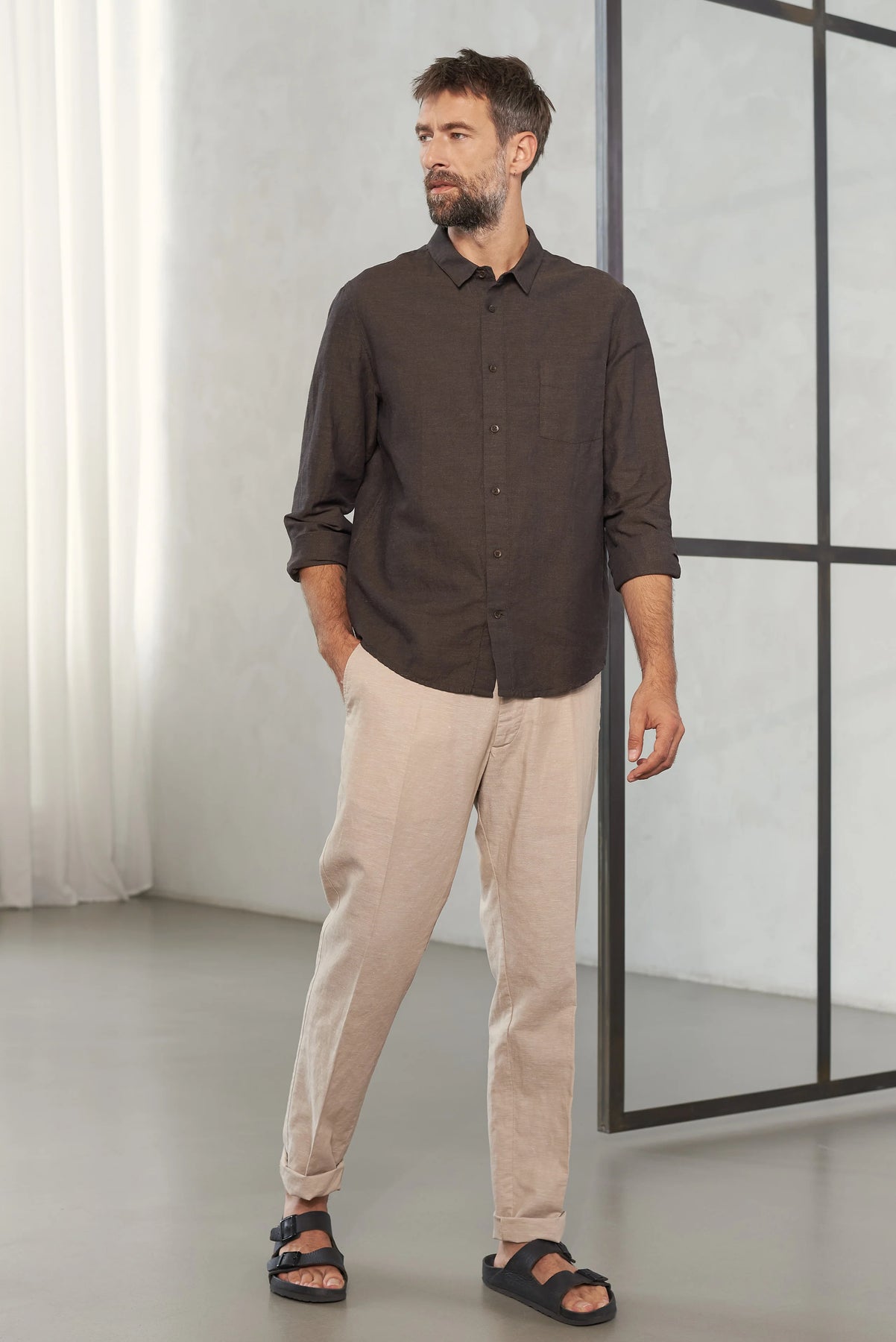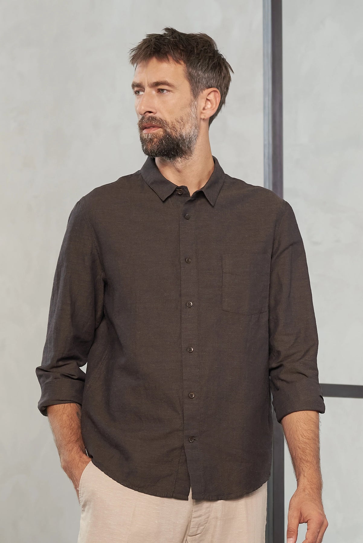 SIMON frá About Companions er klassísk og tímalaus hörskyrta sem sameinar léttleika, þægindi og sjálfbæra hönnun. Hún er hönnuð til að vera fjölhæf í notkun – jafnt í daglegt líf, ferðalög og smart-casual tilefni.