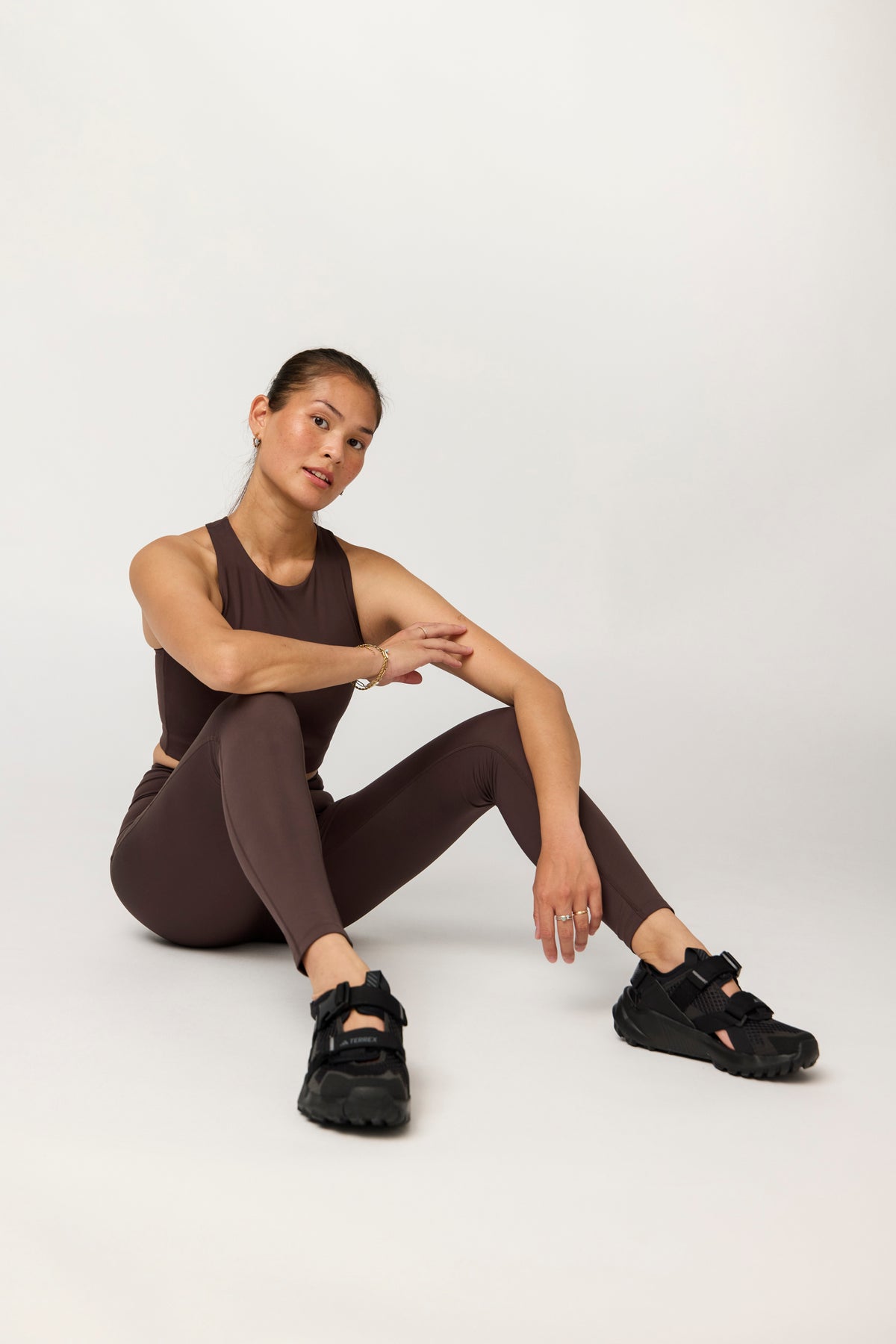 Leggings buxurnar sem voru upphafið á ævintýri Girlfriend Collective. Extra háar í mittið með fjögurra átta teygju "compressive" efni sem er búið til úr vottuðum endurnýttum plastflöskum. Buxurnar hafa allt sem þú þarft fyrir æfinguna, hvort sem það er hlaup, yoga, crossfit eða bara að borða snakk í sófanum heima og horfa á uppáhalds bíómyndina.