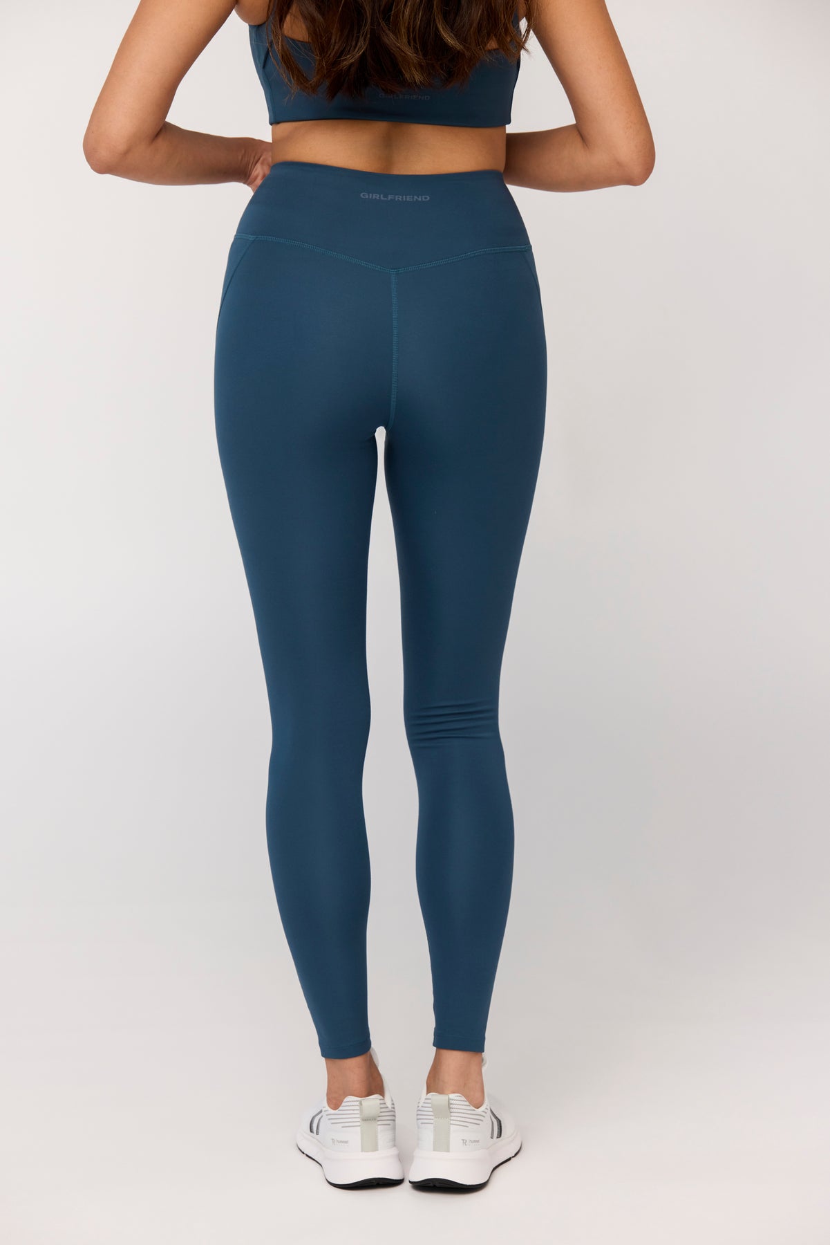 Leggings buxurnar sem voru upphafið á ævintýri Girlfriend Collective. Extra háar í mittið með fjögurra átta teygju "compressive" efni sem er búið til úr vottuðum endurnýttum plastflöskum. Buxurnar hafa allt sem þú þarft fyrir æfinguna, hvort sem það er hlaup, yoga, crossfit eða bara að borða snakk í sófanum heima og horfa á uppáhalds bíómyndina.