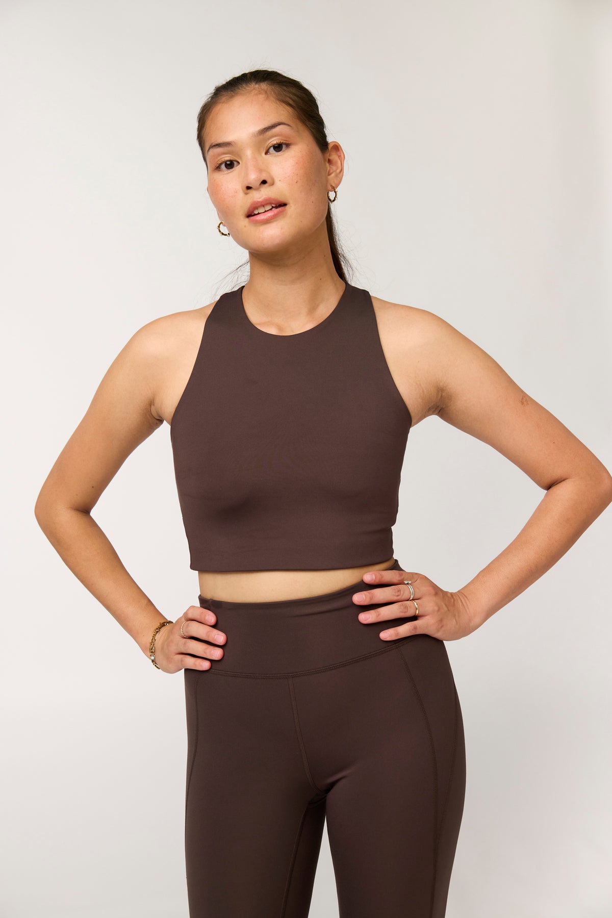 Dylan toppurinn er einstaklega fjölhæfur íþróttatoppur. Hann er hannaður með sveigjanlegu racerback-baki sem veitir góða hreyfigetu án þess að þrengja of mikið. Hálft hálsmálið tryggir góða þekju og virkar sérstaklega vel undir – eða yfir – föt með dýpri skurði.