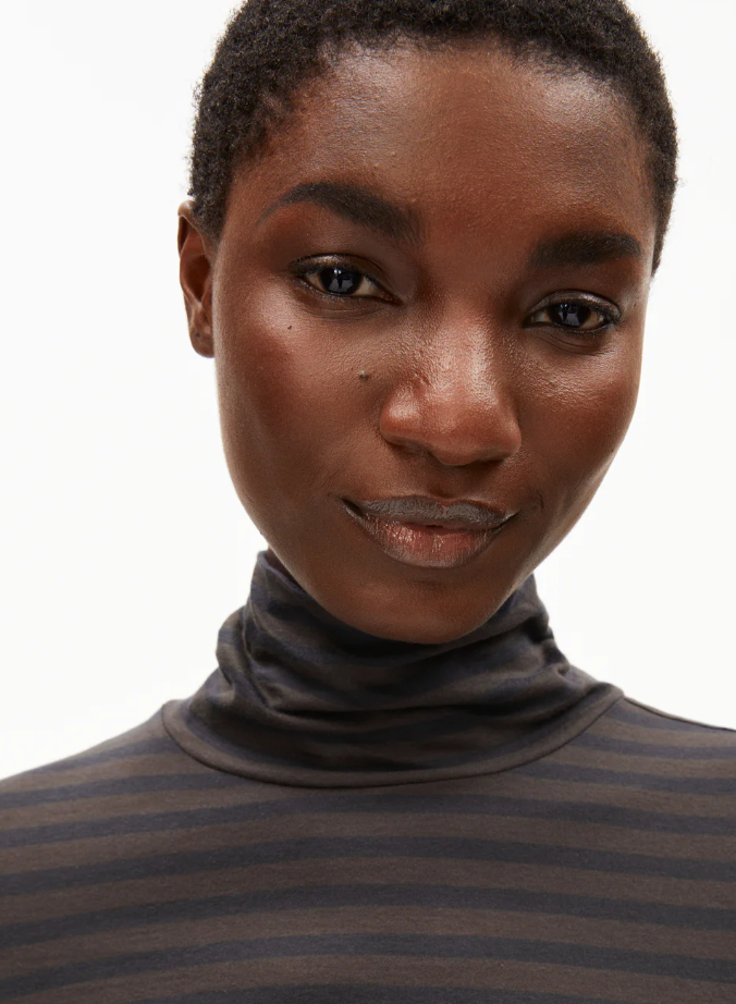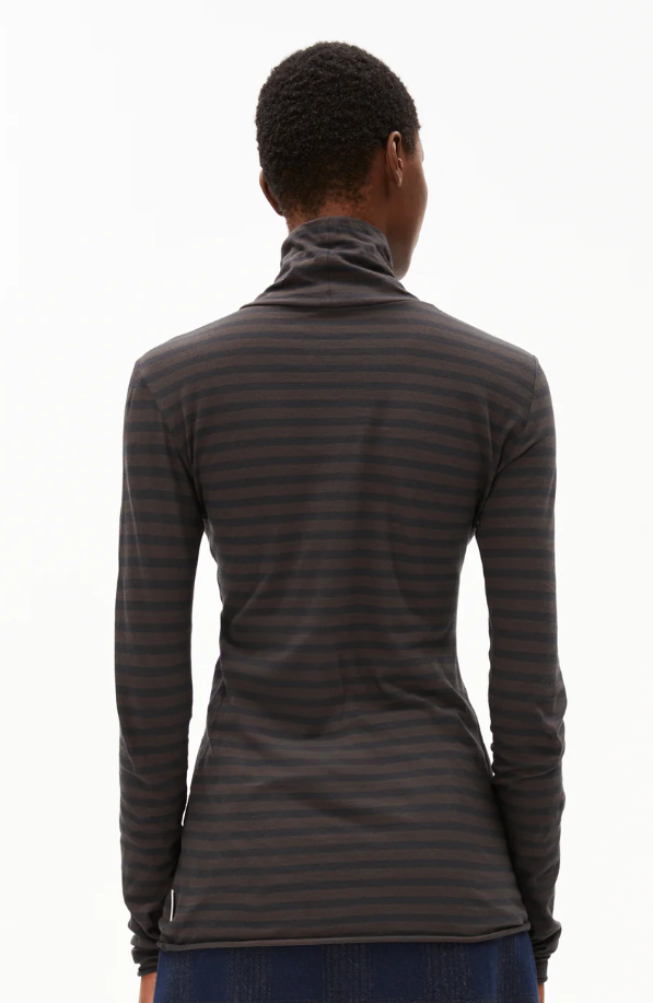 Stílhreinn og þægilegur rúllukragabolur úr 100% lífrænni bómull. Hann er mjúkur, andar vel og fellur fallega á líkamann. Klassískt snið og einföld hönnun gera hann að fjölhæfu flíki sem hentar jafnt í hversdagsklæðnað sem undir jakka eða peysu.