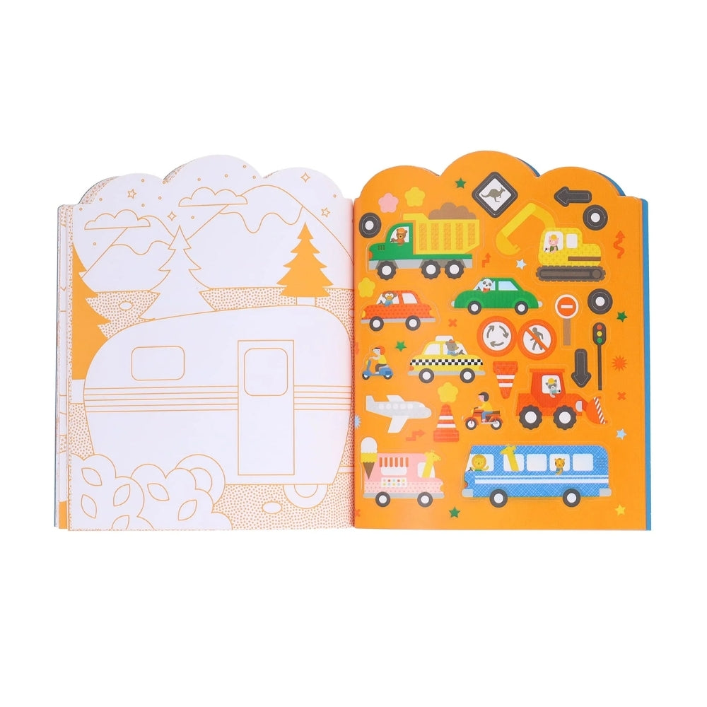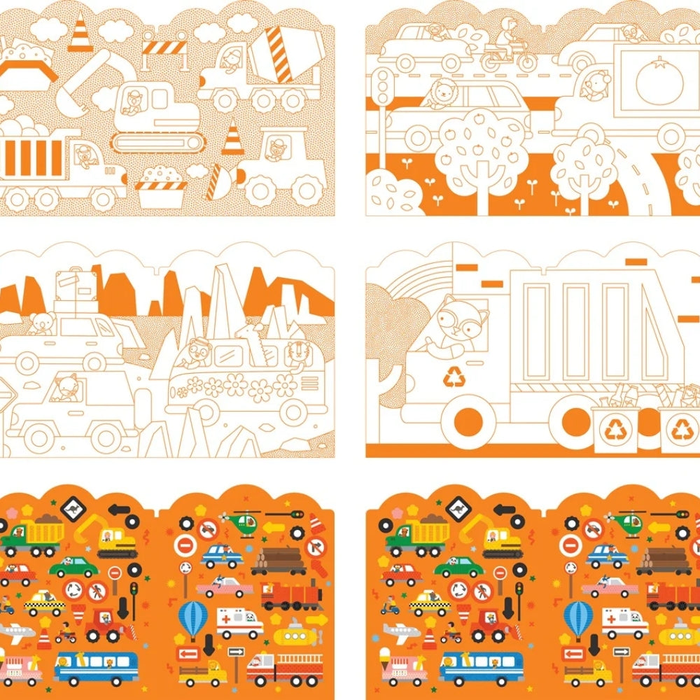 Taktu fram litina og búðu þig undir frábæra stund með ökutækja litabókinni frá Petit Collage! Litaðu spennandi myndir með bílum, gröfum, dráttarvélum og vegum fullum af farartækjum á ferð. Þegar þú hefur klárað að lita, getur þú skreytt myndirnar með meira en 100 límmiðunum sem fylgja – allir með ökutækjaþema!