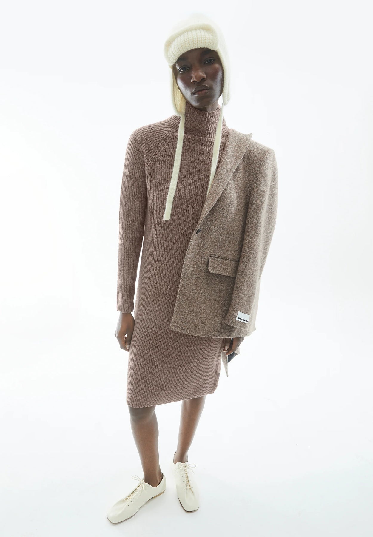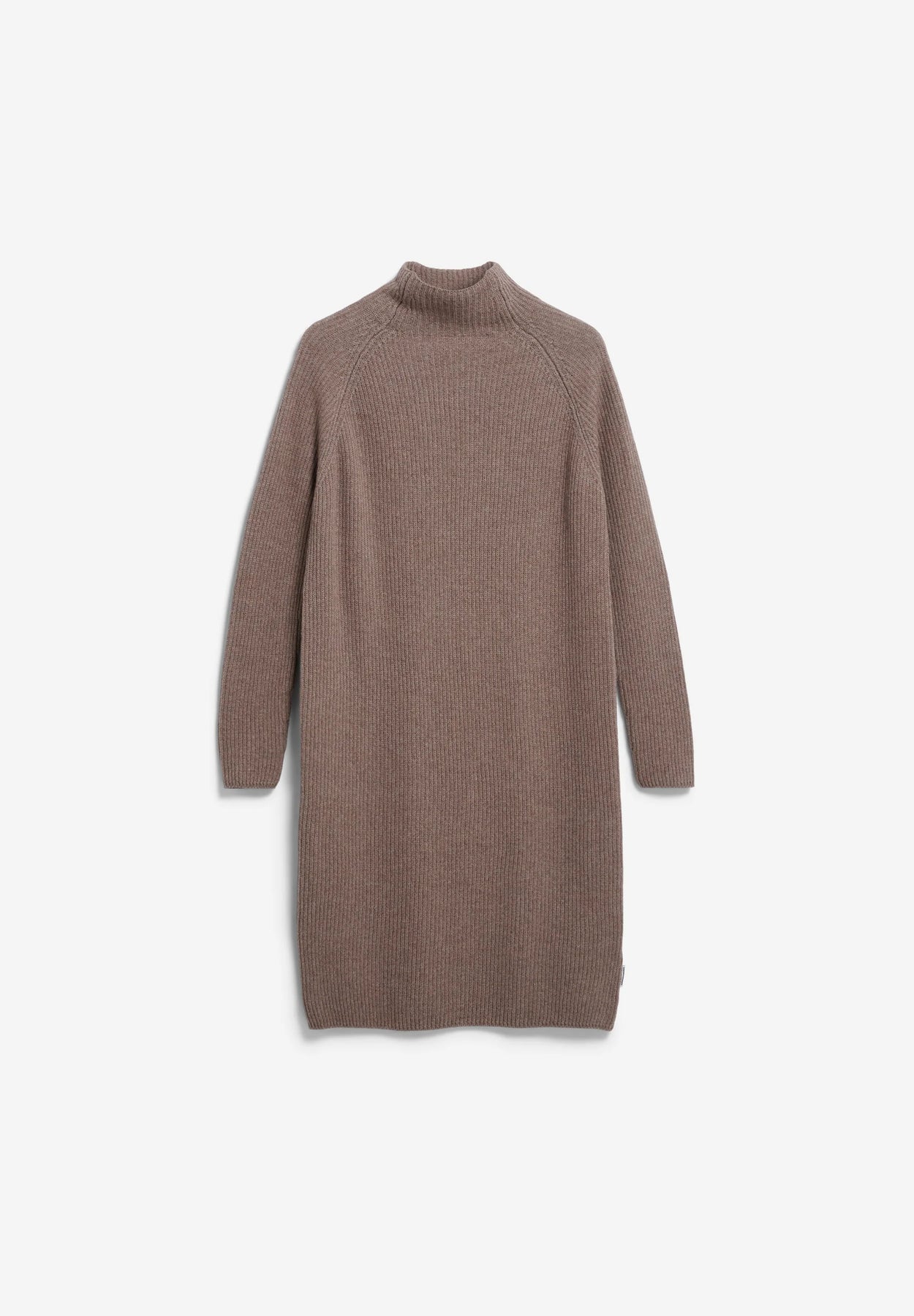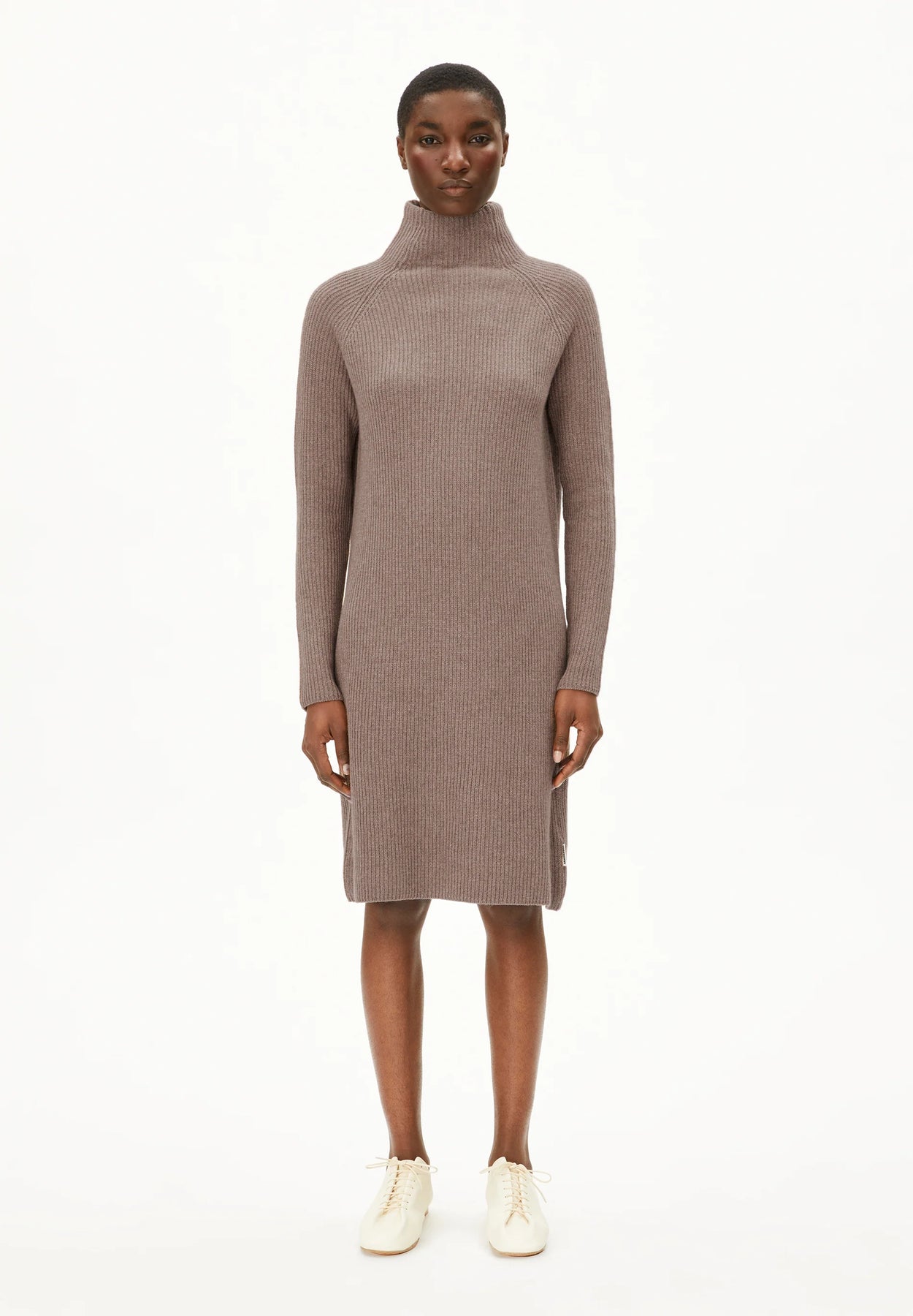 MILLAANA er fallegur, einfaldur prjónakjóll með meðalþykku prjóni og hné-­síðu sniði sem gefur afslappað og þægilegt yfirbragð.