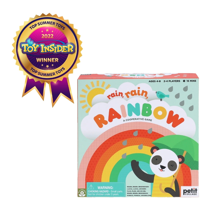 Í Rain, Rain, Rainbow samvinnuspilinu frá Petit Collage þurfa börnin að vinna saman til að sigra leikinn!