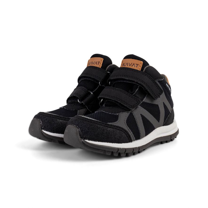 Stílhreinn, vandaður og vatnsheldur strigaskór sem er fullkominn í skólann í vor og úti að leika í allt sumar. Hann er gerður að hluta úr endurunnu textíl / nylon með aukinni styrkingu á tánum. Sniðið er vandlega hannað til að passa að fótum barnanna og auðvelt er að fara í og úr skónum þökk sé einfaldri lokun með frönskum rennilás. Mjúkt innlegg með höggdeyfi og öndun gera skóinn sérstaklega þægilegann. Ytra sólin er úr gúmmi sem veitir gott grip. Þvo má skóna í þvottavél á 30˚. Eins og allar skór frá Kavat eru þeir án teflon, PTFE og annara vetniskolefna.