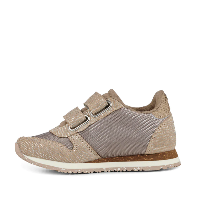 Elegant sneakers for children with trendy glitter detailing. The firm heel cap and Velcro straps keep the shoes firmly in place and make them easy for your child to put on and take off. Crafted in calf suede and nylon, ensuring a perfect fit. All kids’ sneakers feature FIFTY: a backing comprising at least 50% recycled polyester made from plastic bottles. Removable insole of naturally shock-absorbing cork, and an outsole made from natural rubber combined with at least 10% recycled rubber. Did you know that all our cork insoles come with size markings, which makes it easy for you to ensure that your child gets the right size, including the recommended growing room?