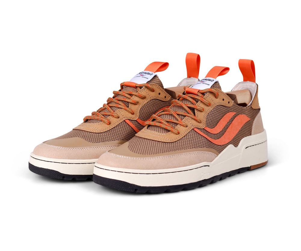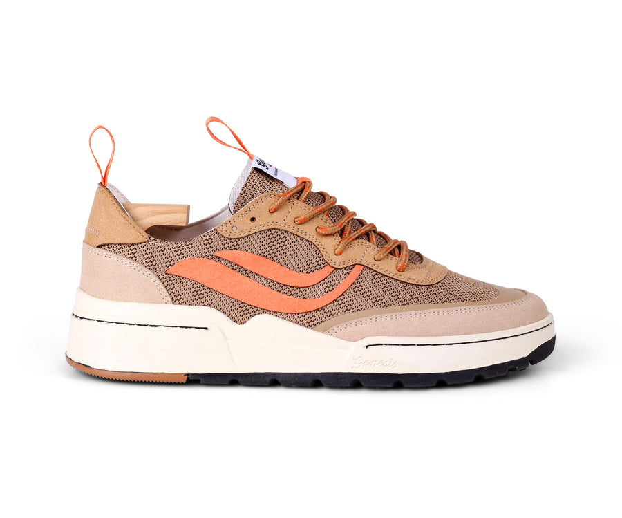 Upper material & logo: BIOWAVE™ Cornwaste – vegan leather made from corn waste BIOWAVE™ and Sugar Cane – vegan suede made from sugar cane + recycled PET