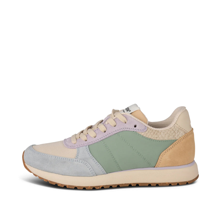 Ronja is based on an innovative design with cool color blocked details and a sporty design, crafted in leather and textile with fish leather details on the heel.