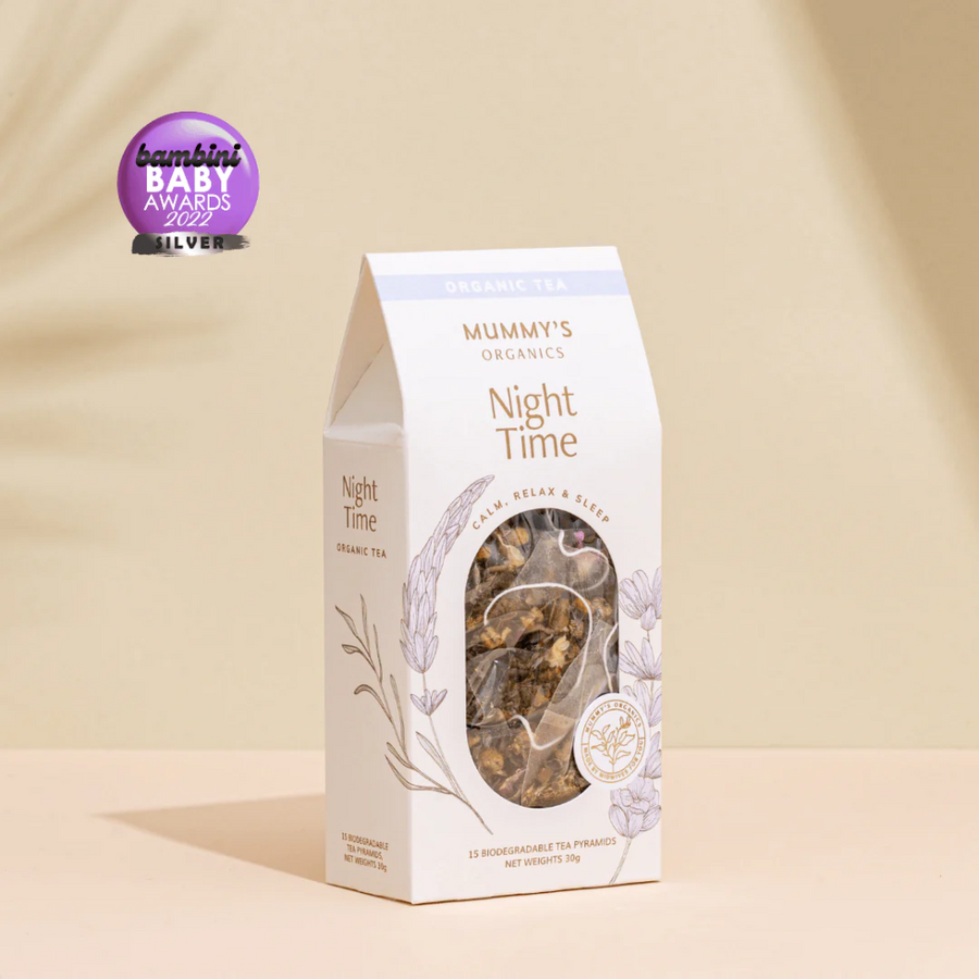 Slakaðu á fyrir svefninn með lífræna næturteinu frá Mummys Organics sem er sérstaklega búið til til að styðja við slökun og góðan svefn. Þessi lúxusblanda saman stendur af róandi kamillu, slakandi lavender og streitulosandi lime blómum – náttúruleg og lífræn leið sem er vel þekkt fyrir að draga úr kvíða og hvetja til meiri svefngæða.