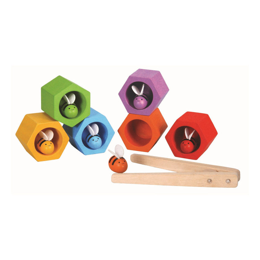 Þessar sex krúttlegu og litríku býflugur æfa fínhreyfingar, liti og læra að telja. Töng fylgir með til að setja býflugurnar í búið sitt, þau yngstu geta notað fingurna til að einfalda leikinn.