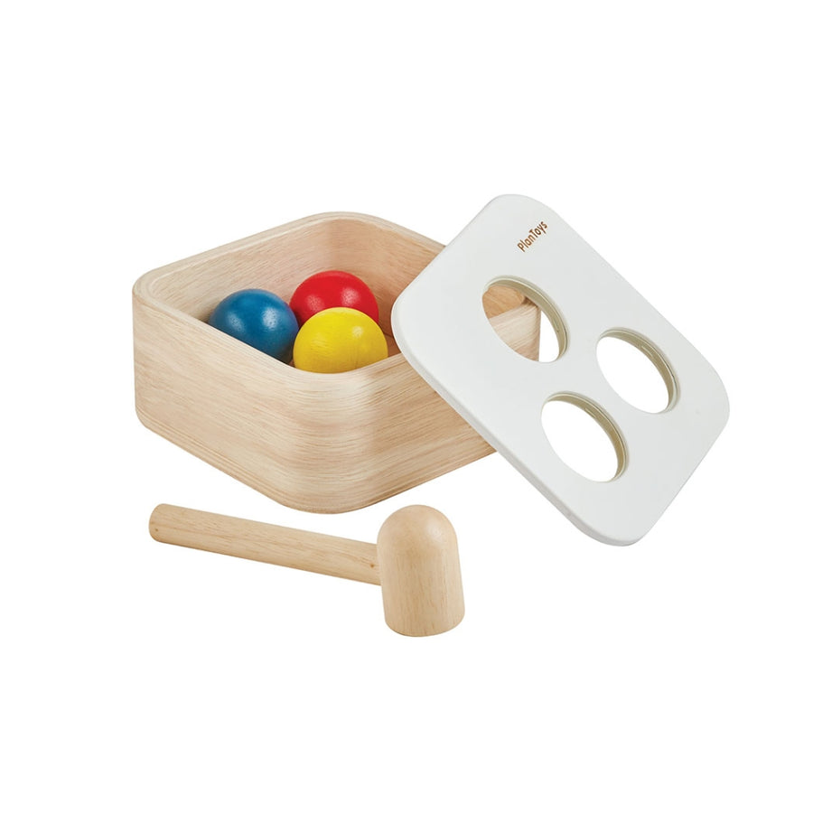 Punch & Drop Bin er klassískt og tímalaust leikfang sem sameinar hreyfingu og þroska. Börn slá litríku kúlunum niður í kassann með tréhammri, fylgjast með þeim detta og ná þeim svo aftur – endalaus gleði og þjálfun fyrir litlar hendur! Þetta leikfang styrkir samhæfingu augna og handa, þol og einbeitingu.