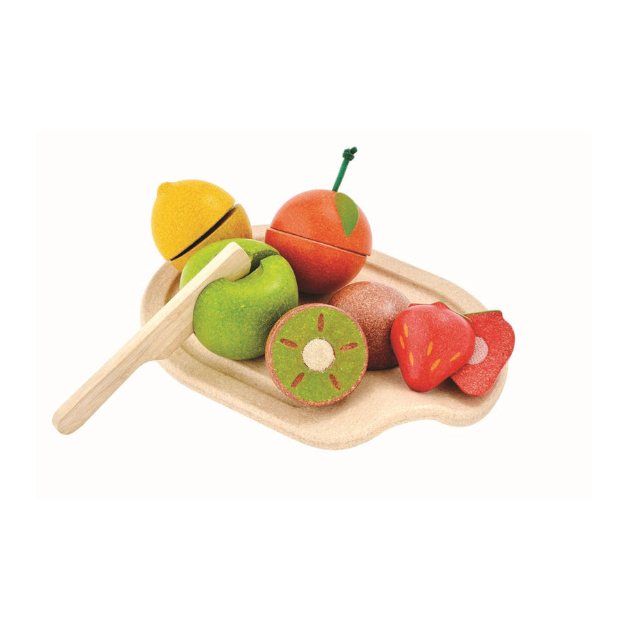 Fimm girnilegir ávextir í pakka ásamt skurðabretti og hníf, tilvalið í hlutverkaleik!