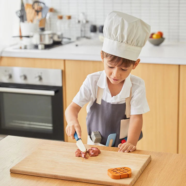 Láttu litla kokkinn blómstra með þessu fallega matreiðslusetti frá PlanToys! Leikfangið hvetur til skapandi hlutverkaleiks og samveru í eldhúsleik, þar sem börn geta hermt eftir daglegum aðstæðum og þróað félagsfærni og ímyndunarafl. Fullkomið í leikeldhúsið!