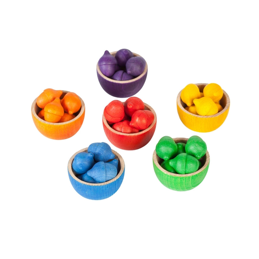 Þetta skemmtilega sett gerir börnum kleift að þróa stærfræðilega hugsun og fínhreyfingar. Fínhreyfitöngin bætir einbeitingu og þjálfar fínhreyfingar. Þetta opna leikfang bíður uppá margt eins og að flokka eftir litum og telja akörnin. Það nýtist vel með öðrum leikföngum og í hlutverkaleik þar sem að ímyndunaraflið fær að ráða för.