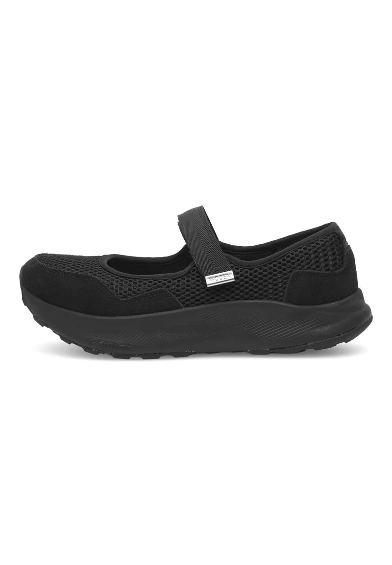 Þeir eru framleiddir úr endurunnu textílefni og LWG-vottuðu leðri, með mjúkri, mótaðri PU-innleggssólu klæddri korki og EVA-millisóla sem veitir langvarandi stuðning. Mary Mesh eru einnig skreyttir með ASC-vottuðu endurunnu fiskileðri og slitsterkum gúmmísóla með 10% endurunnu gúmmíi. Skórnir veita andardræg þægindi sem aukast enn frekar með WODEN Air Flow System™, sem tryggir hámarks sveigjanleika.